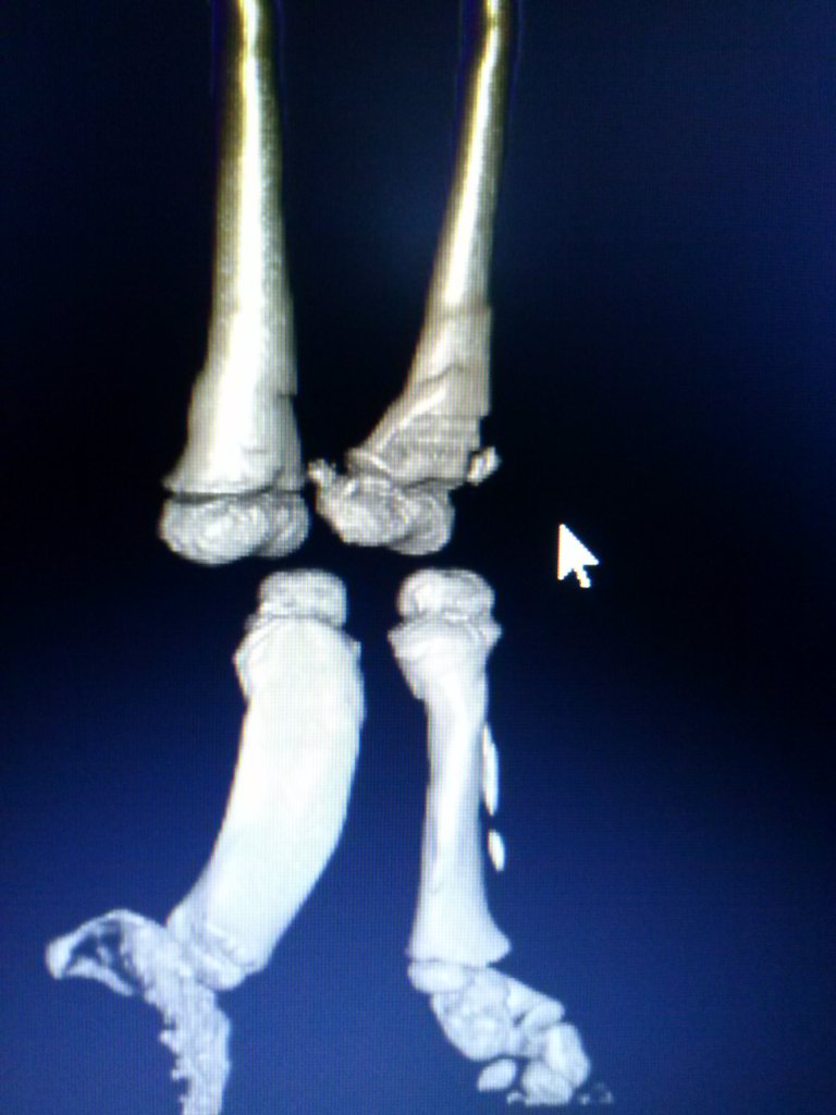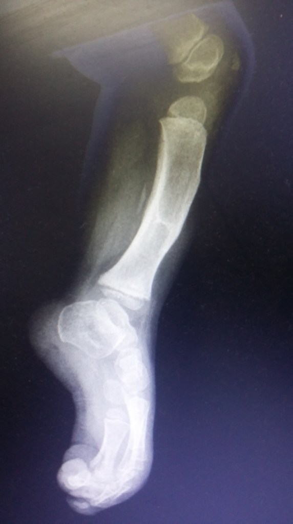 Infección y deformidad en tobillo y pie mas acortamiento óseo de pierna
